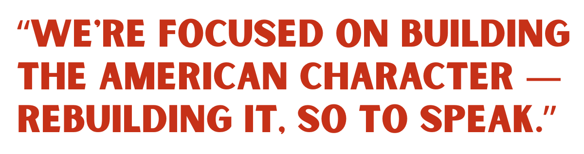 “The marksmanship instruction is kind of a hook that we use to draw people in so that we can tell them these stories and try to inspire them — to explain that love of liberty is what this country is really about and how much people sacrificed 250 years ago to win it,” explains Kehoe. “So, yeah, we're a marksmanship program, but we're a very unique marksmanship program. We're focused on building the American character — rebuilding it, so to speak.”