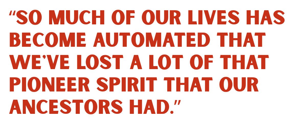 “So much of our lives has become automated that we've lost a lot of that pioneer spirit that our ancestors had,” he adds, “and I think we would be a better nation if we would return to that.”